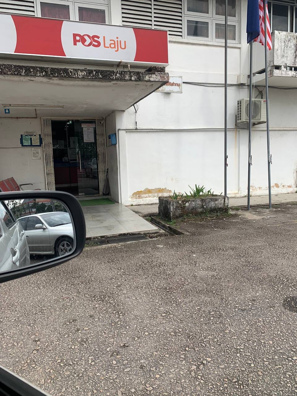 Tadi saya pergi Pos Laju. Saya pos guna kotak Pos Laju, kiranya mereka setel semua, saya bagi barang saya sahaja.
