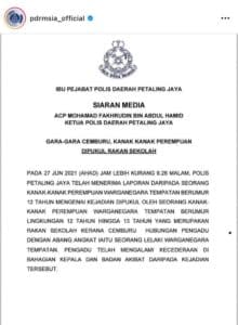 Gambar: Kenyataan dari pihak polis berkaitan dengan kes tersebut.