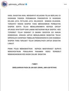 Gambar: Kenyataan dari pihak polis berkaitan dengan kes tersebut.