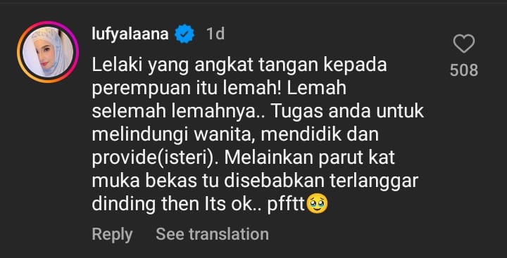 Malah, pemilik nama sebenar kepada Lutfyah Sheikh Omar itu juga menyertakan emoji sedih mencerminkan beliau turut terkesan apabila ada lelaki tergamak bersikap melampau terhadap wanita.