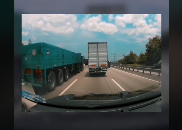 Tular rakaman papan pemuka (dashboard) memaparkan detik-detik sebuah kereta disondol lori ketika seorang wanita sedang berbual mengenai brek kecemasan.