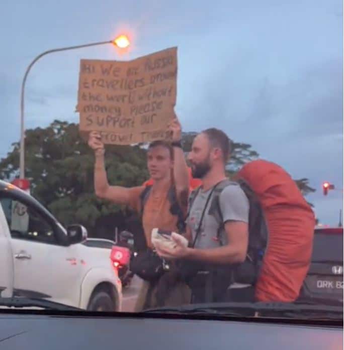 Dalam video klip ini menunjukkan dua orang lelaki ‘mat saleh’ meminta sedekah di setiap kenderaan di atas jalan raya. Pemilik akaun ini juga mengatakan mereka sudah sampai di negeri Sarawak, di mana orang ramai turut mengenali mereka berdua yang sering meminta wang di jalanan.