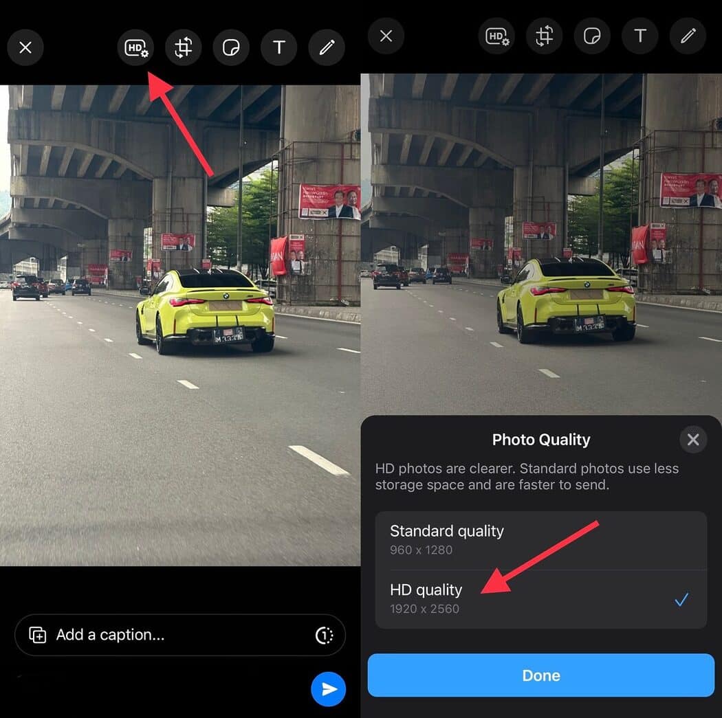 Menariknya, ciri ini bakal tersedia pada mesej secara automatik apabila anda ingin menghantar gambar. Tetapi hanya gambar yang diambil oleh kamera peranti sahaja yang menyokong ciri HD berkenaan.